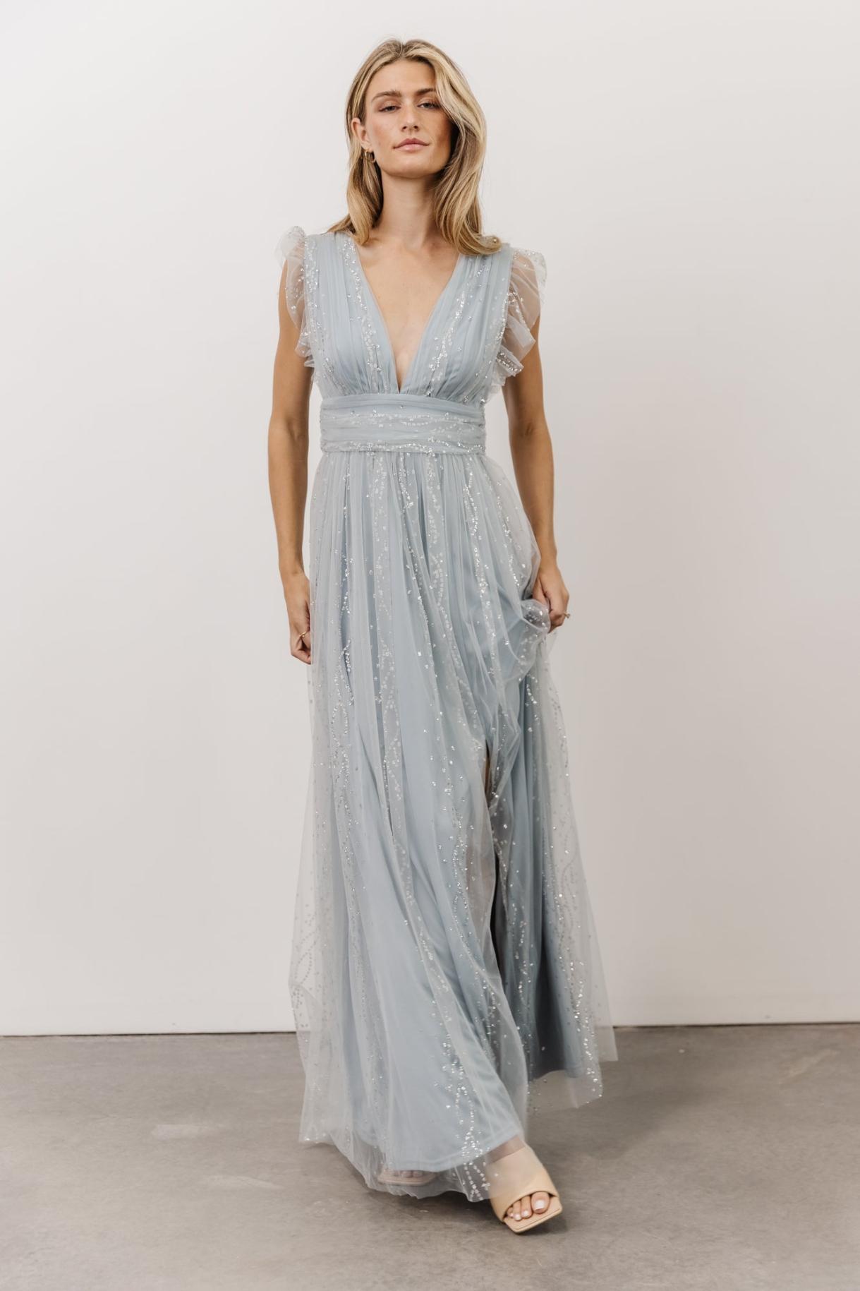Baltic Born Annika Sequin Mesh Maxi Dress Dusty Blue | Vaatteet Maksimekot