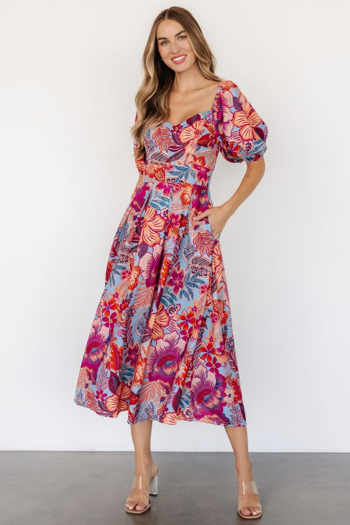 Baltic Born Elisha Midi Dress Sininen + Monikukkainen | Vaatteet Midimekot