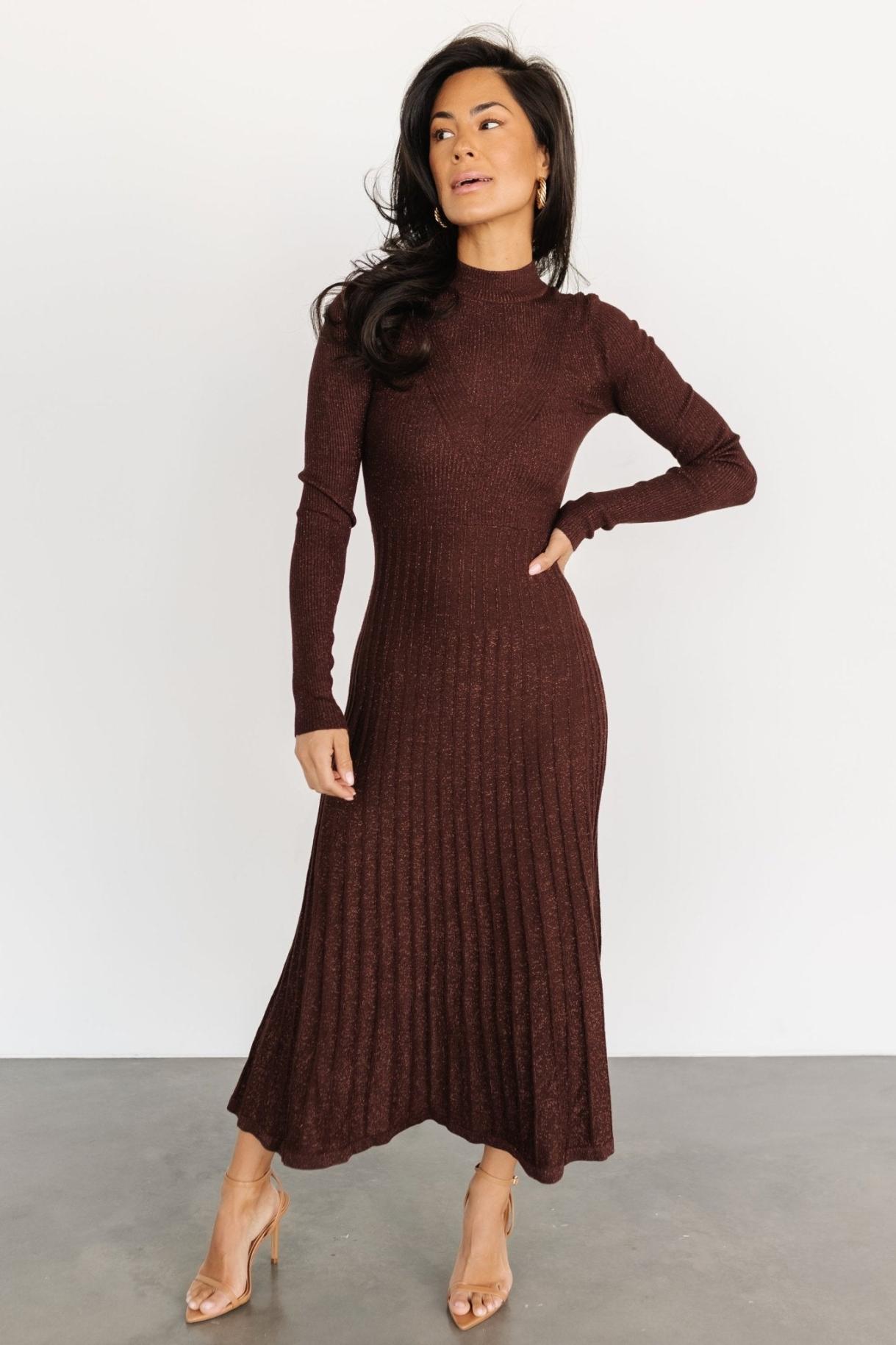 Baltic Born Jamelia Pleated Sweater Dress Ruskea + Kulta | Vaatteet Neulemekot