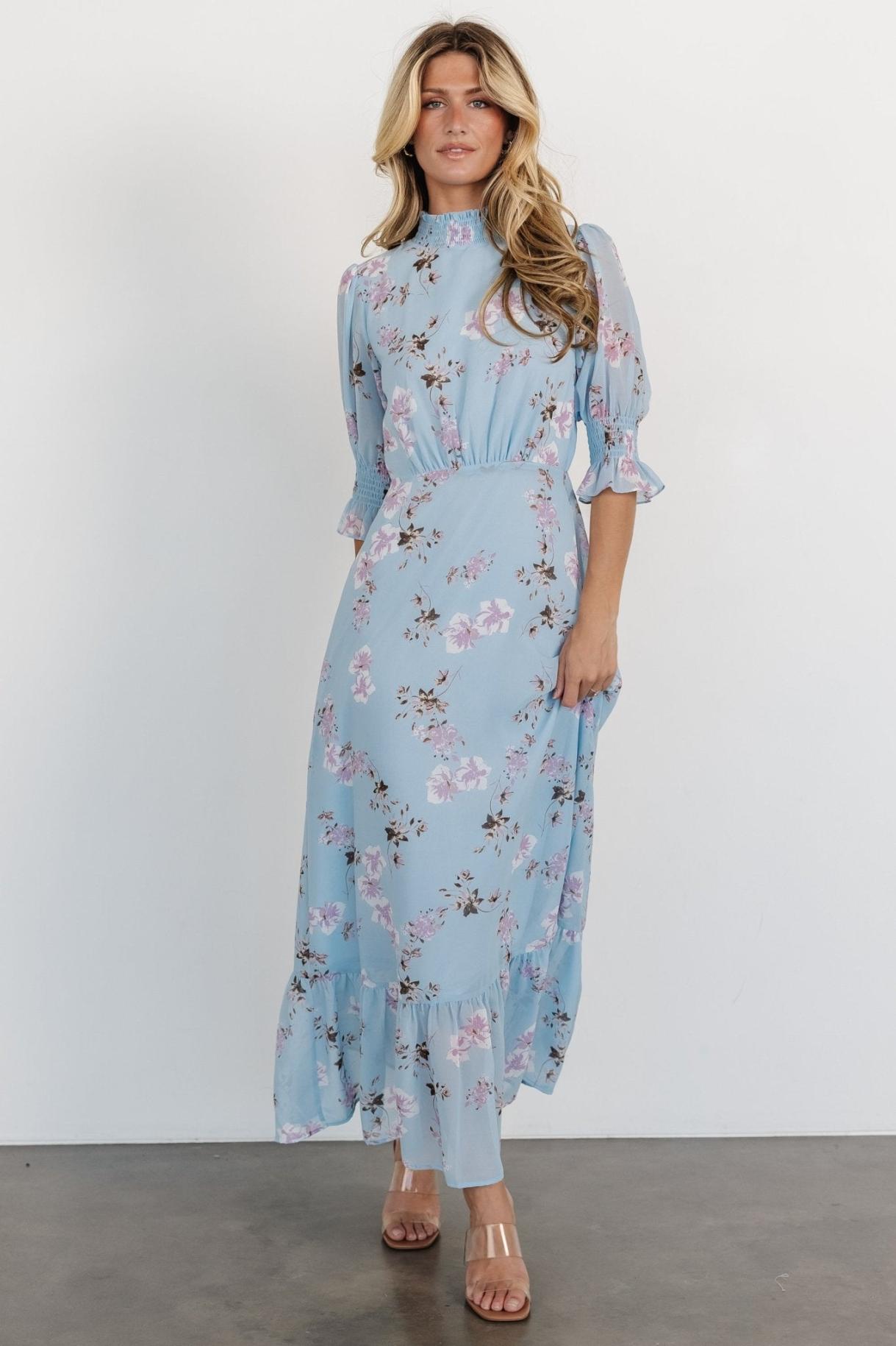 Baltic Born Marie -vetoketjullinen maksimekko, taivaansininen kukkakuvio | Clothing Guest -mekot