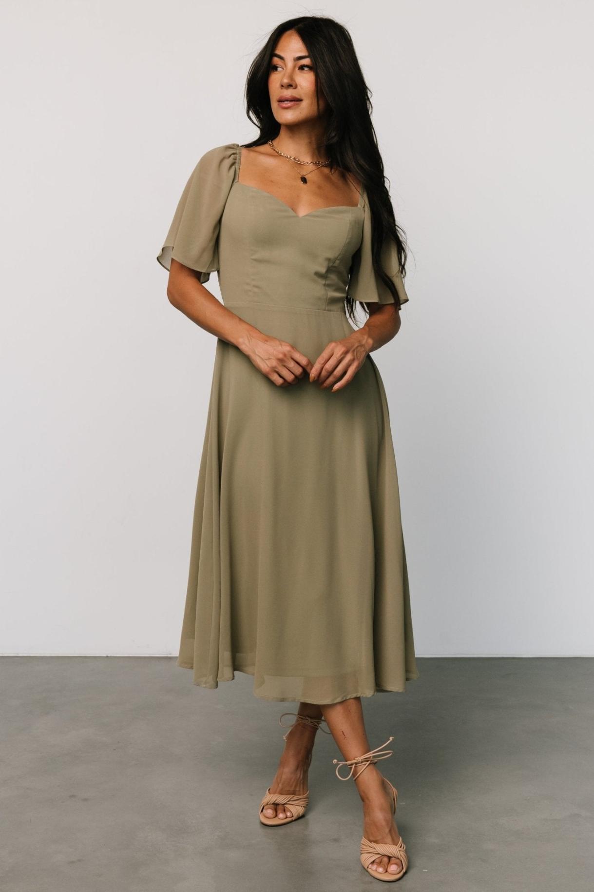 Baltic Born Colette Sweetheart Midi Dress Dusty Olive | Clothing Guest Dresses