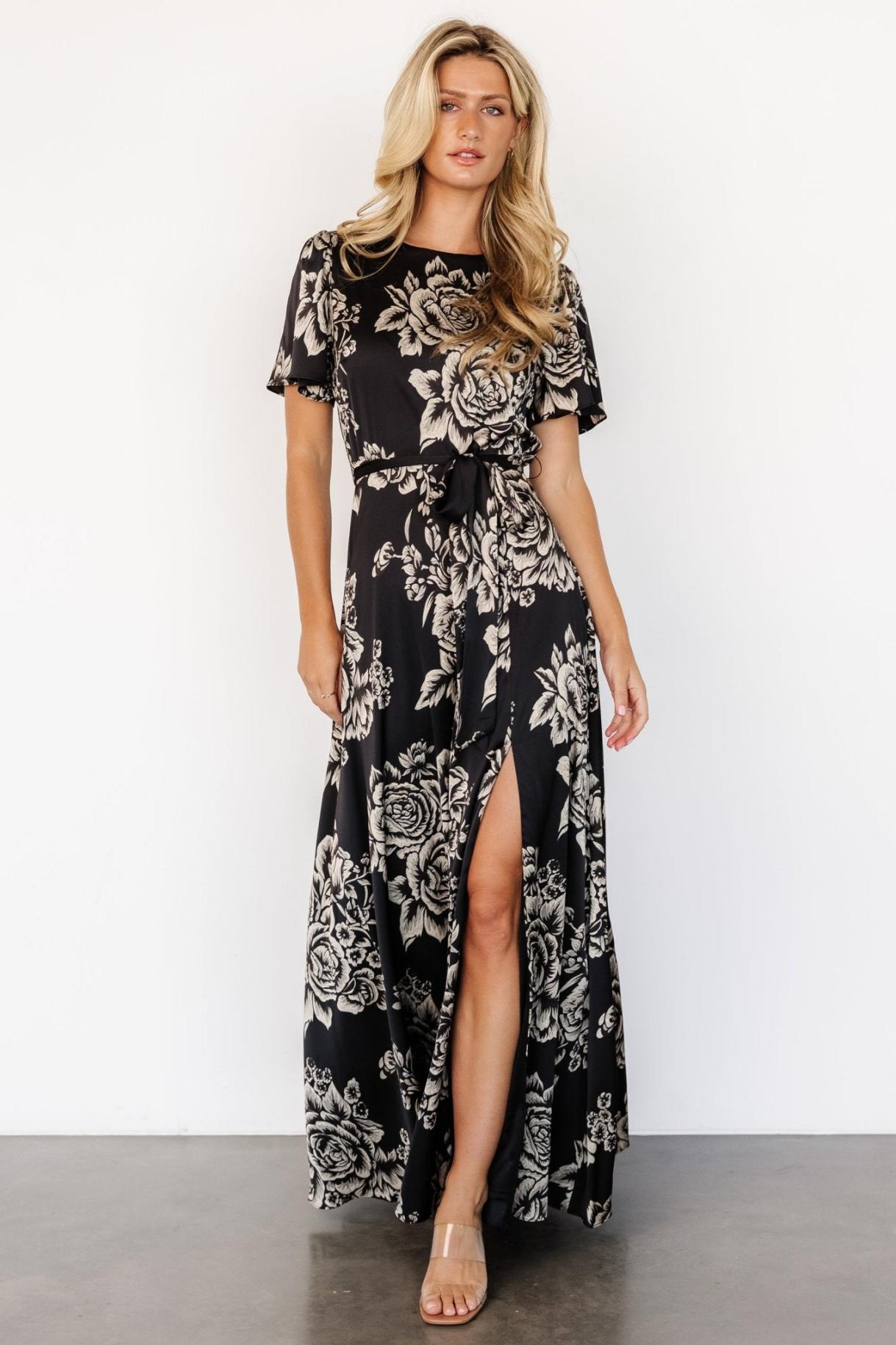 Baltic Born Agnes Satin Maxi Dress Musta + Kermanvärinen Kukallinen | Vaatteet Vierasmekot