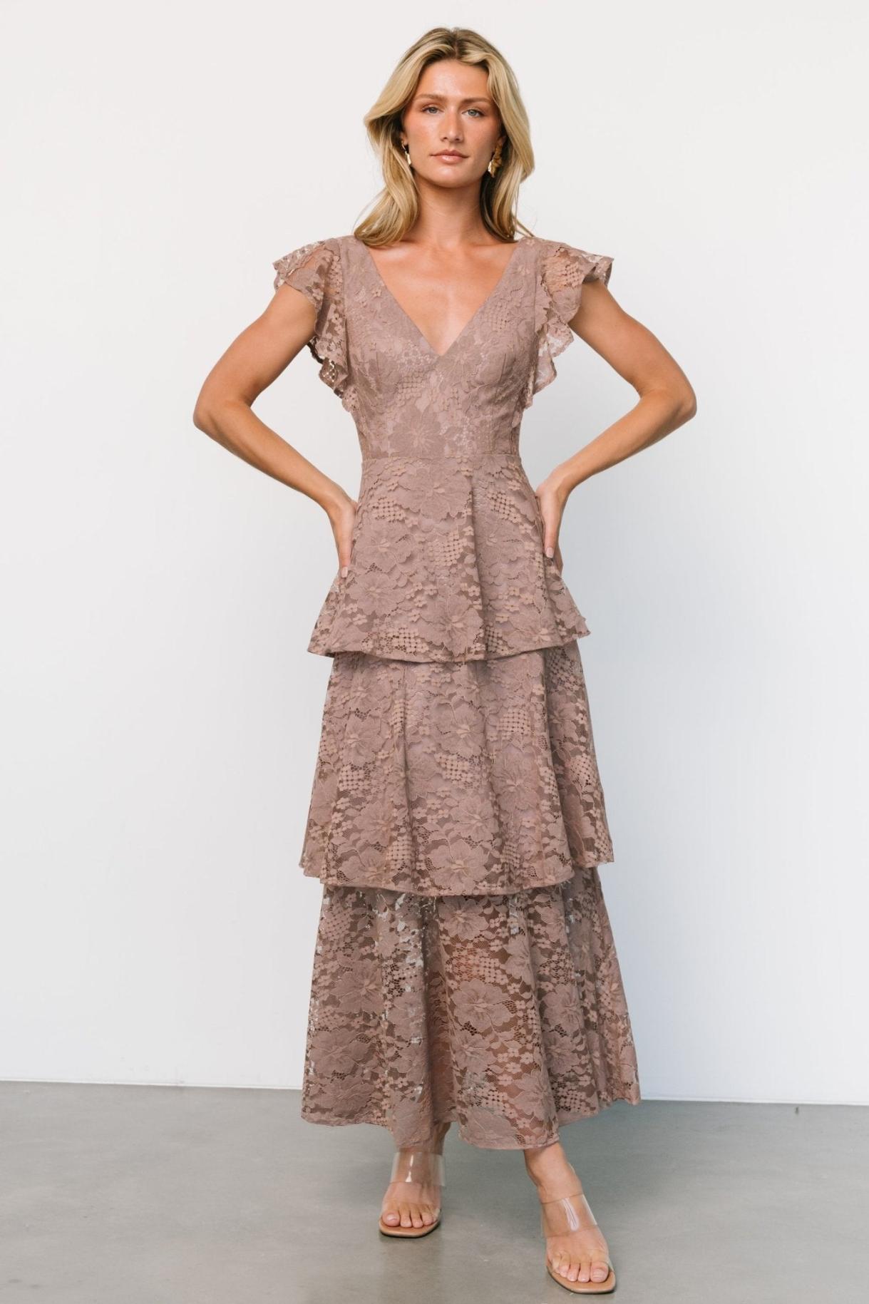 Baltic Born Margot Lace Tiered Maxi Dress Desert Taupe | Clothing Guest Dresses