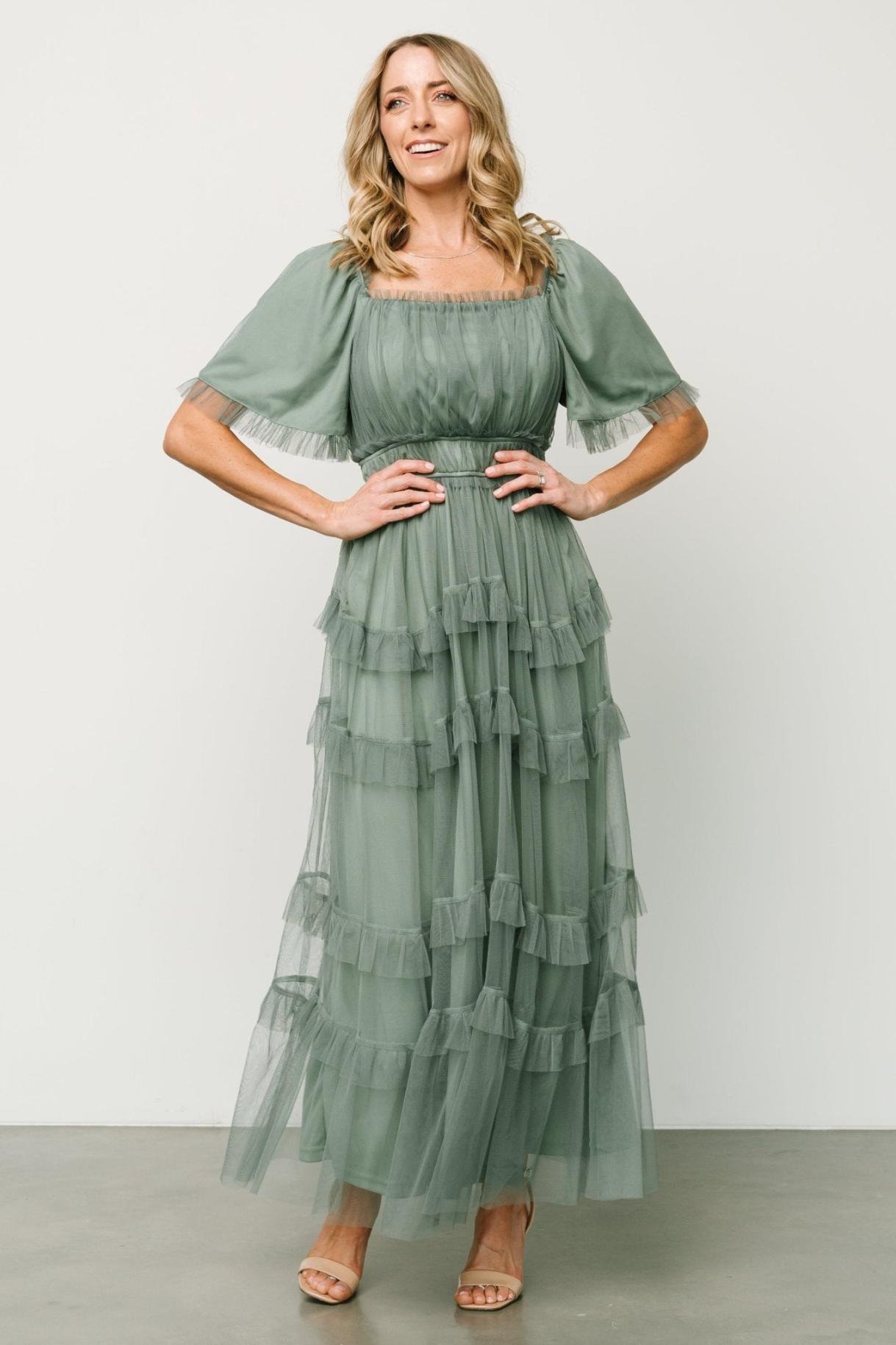 Baltic Born Magdalena -tyllimaksimekko, eukalyptus | Tyllivaatteet