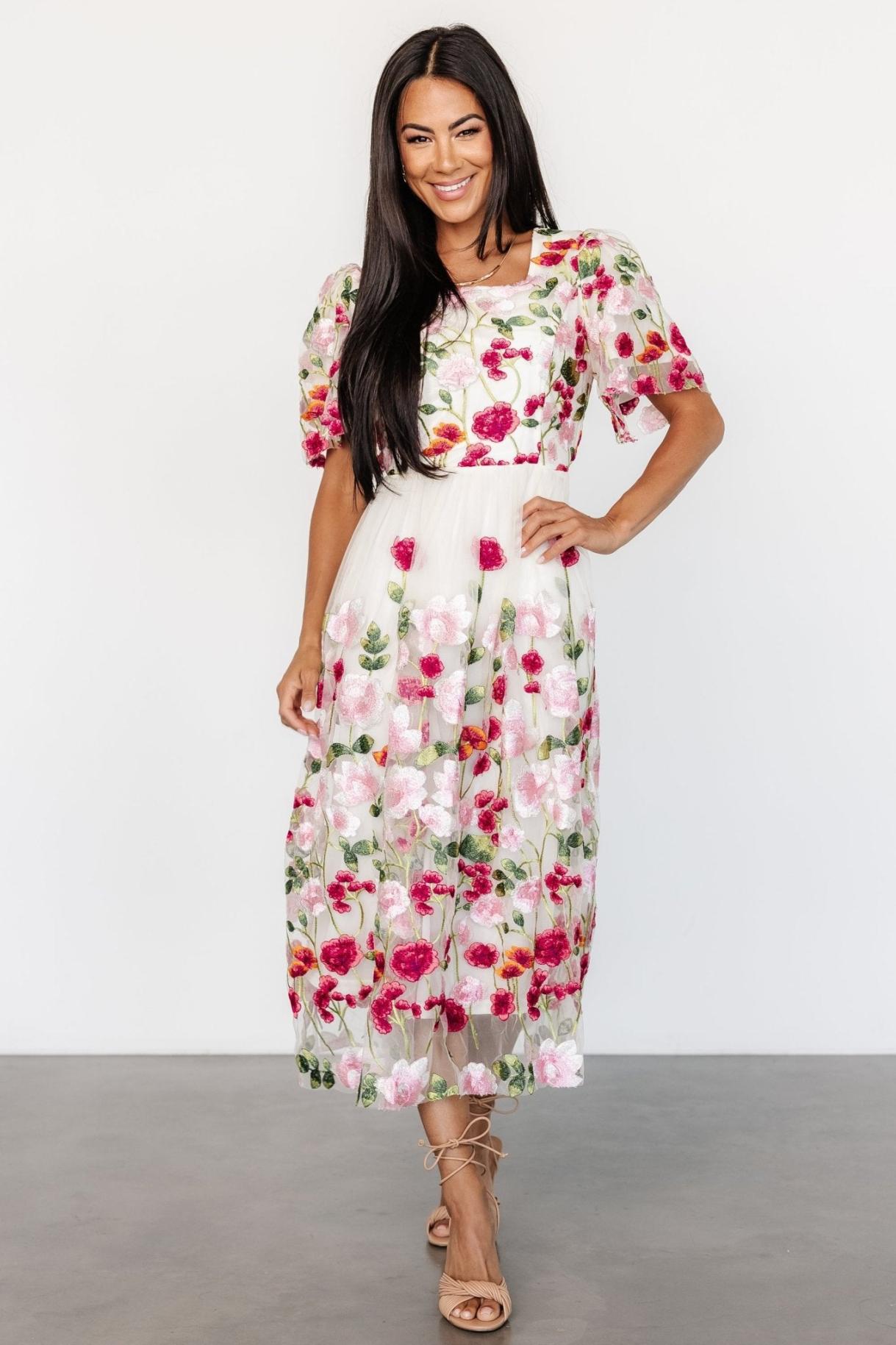 Baltic Born Anastasie kukkakirjailtu mekko pinkki multi | Tyllivaatteet