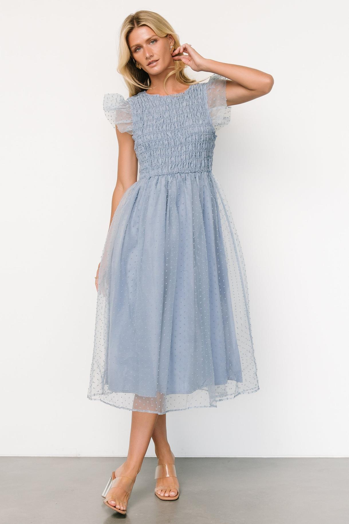 발틱 본 앨리스 도트 미디 드레스 더스티 블루 | 의류 게스트 드레스