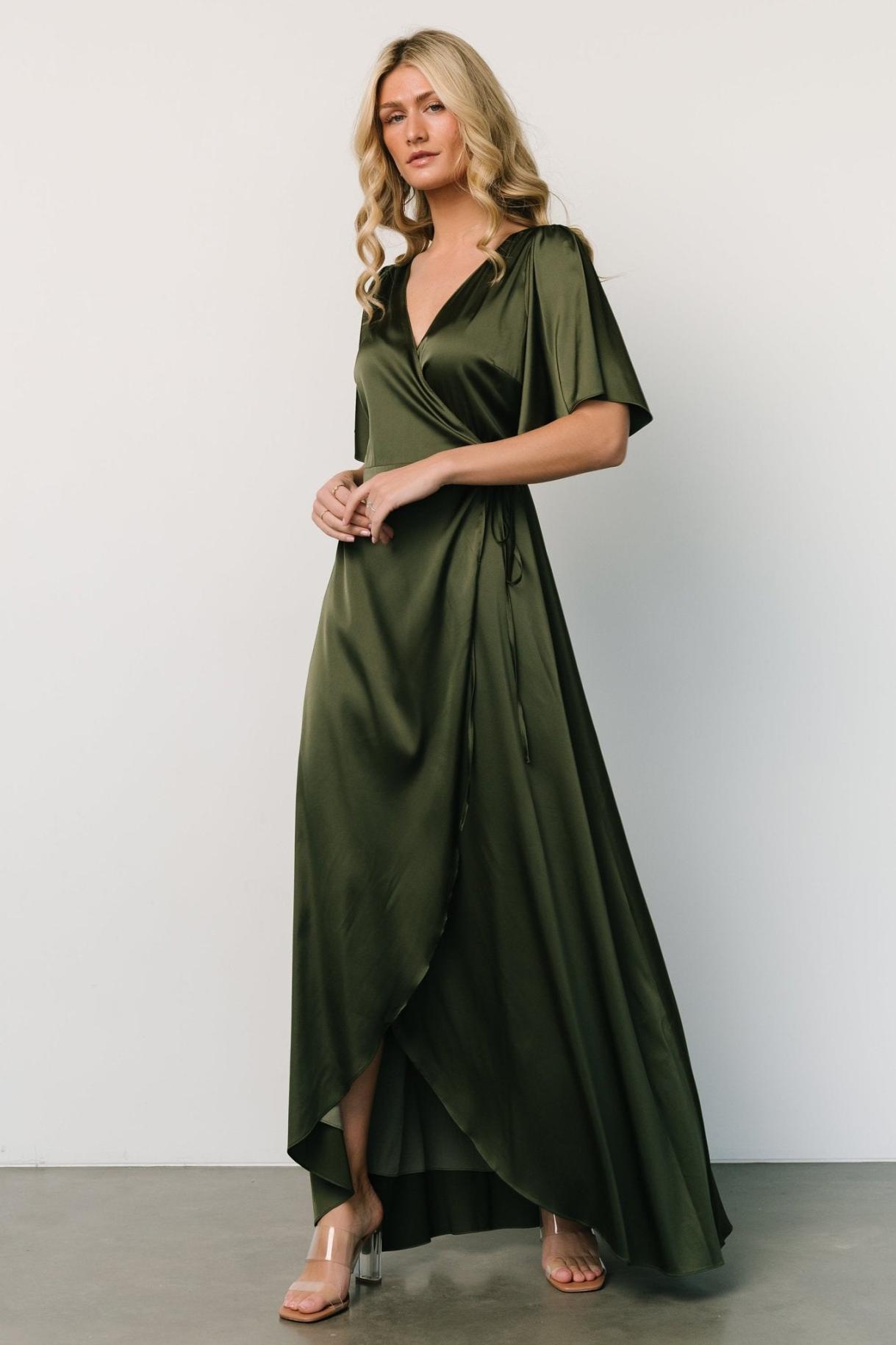 발틱 본 바라 새틴 맥시 랩 드레스 주니퍼 그린 | 의류 맥시 드레스
