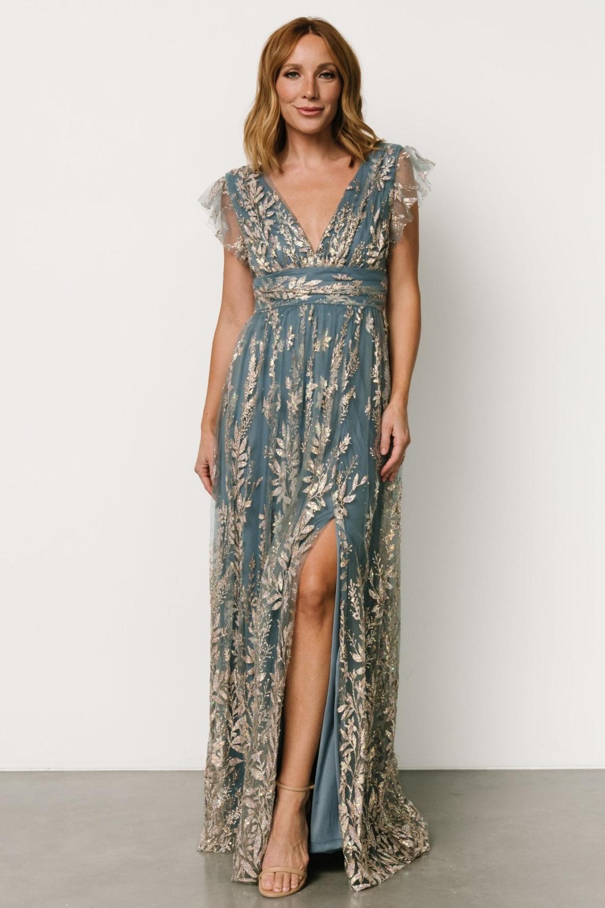 발틱 본 카리나 쉬머 가운 블루 + 로즈 골드 | 의류 맥시 드레스