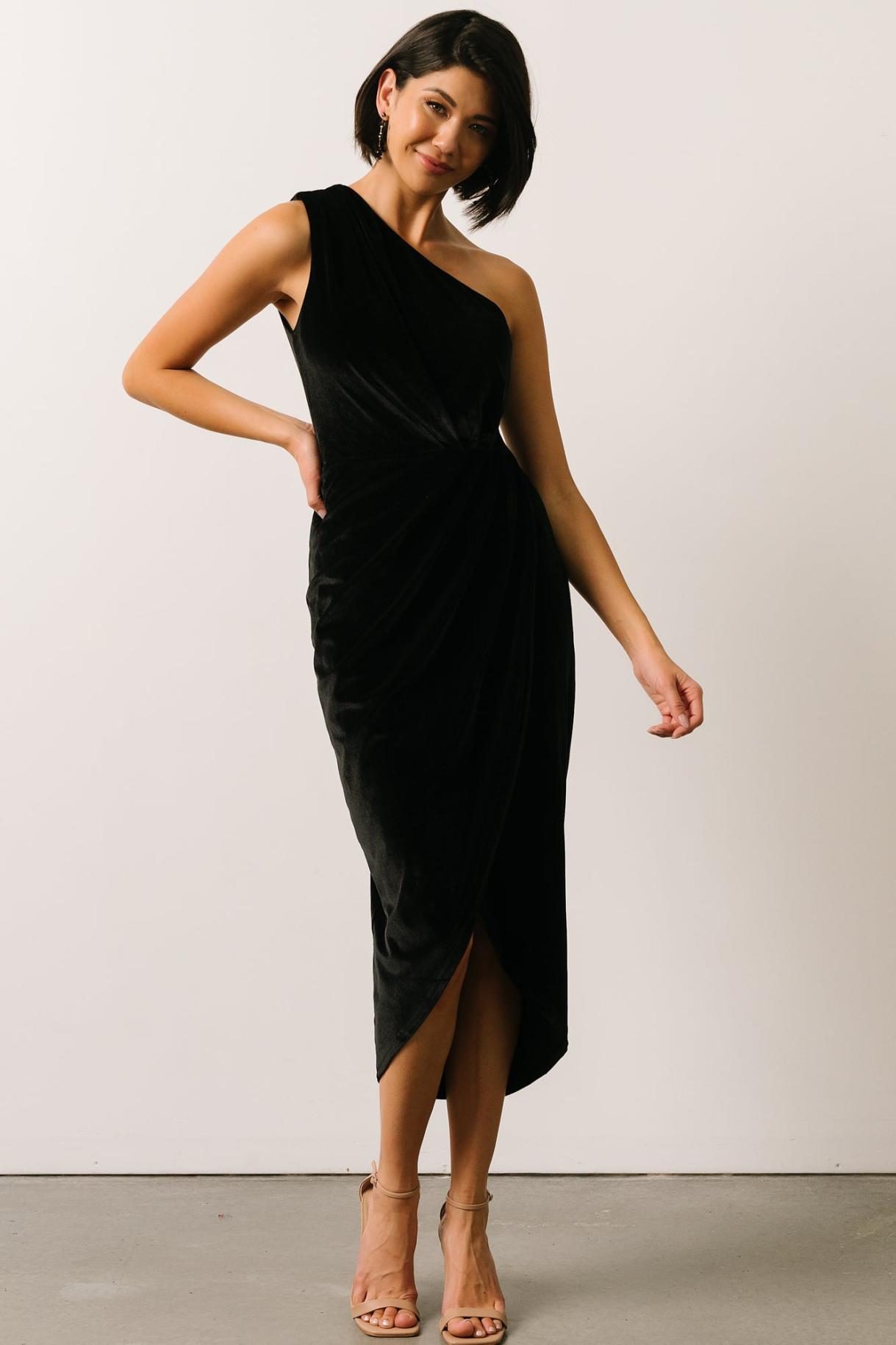 발틱 본 코트니 벨벳 원숄더 미디 드레스 블랙 | 의류 미디 드레스