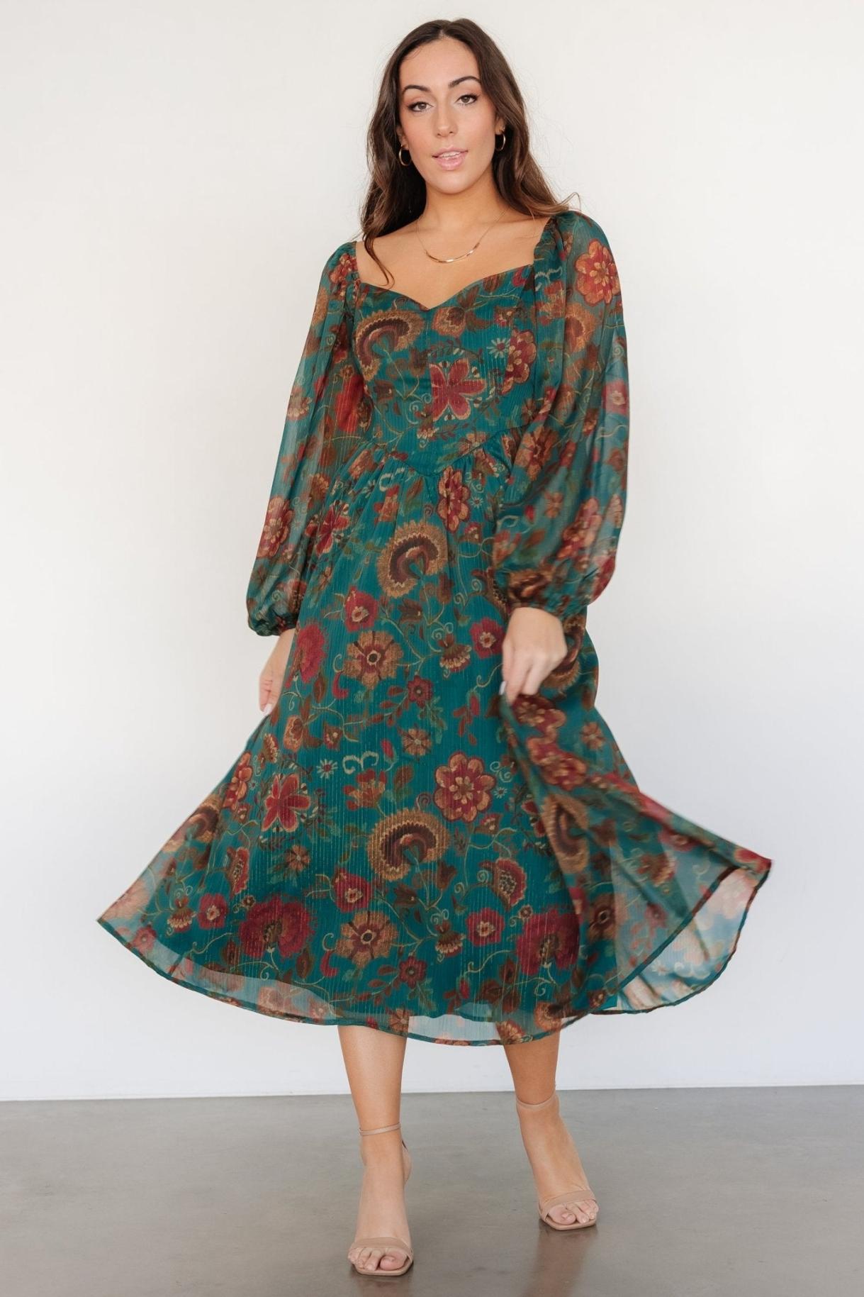발틱 본 바베트 바스크 웨이스트 드레스 틸 멀티 플로럴 | 의류 미디 드레스