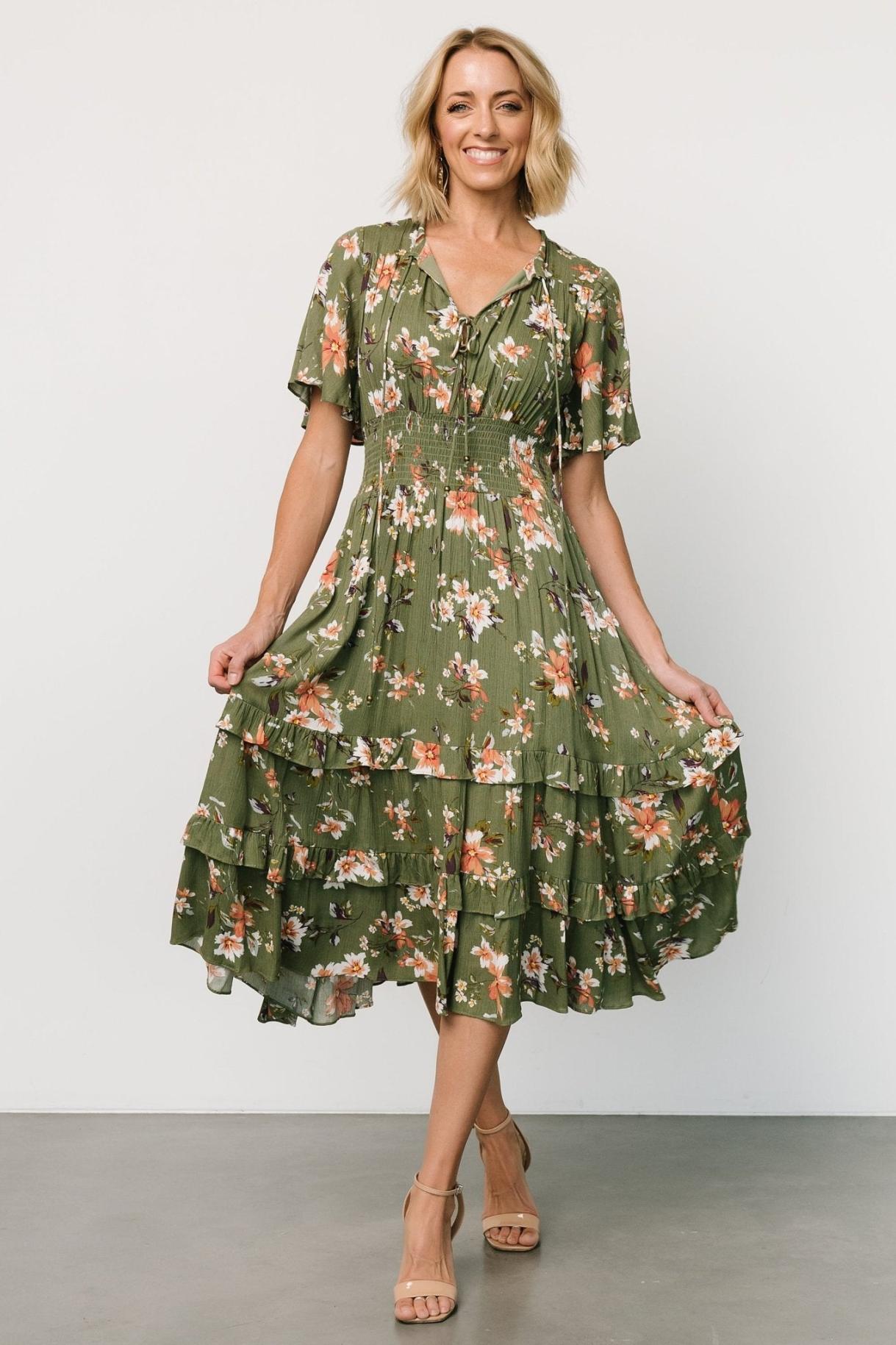 발틱 본 스펠 보헤미안 미디 드레스 올리브 플로럴 | 의류 미디 드레스