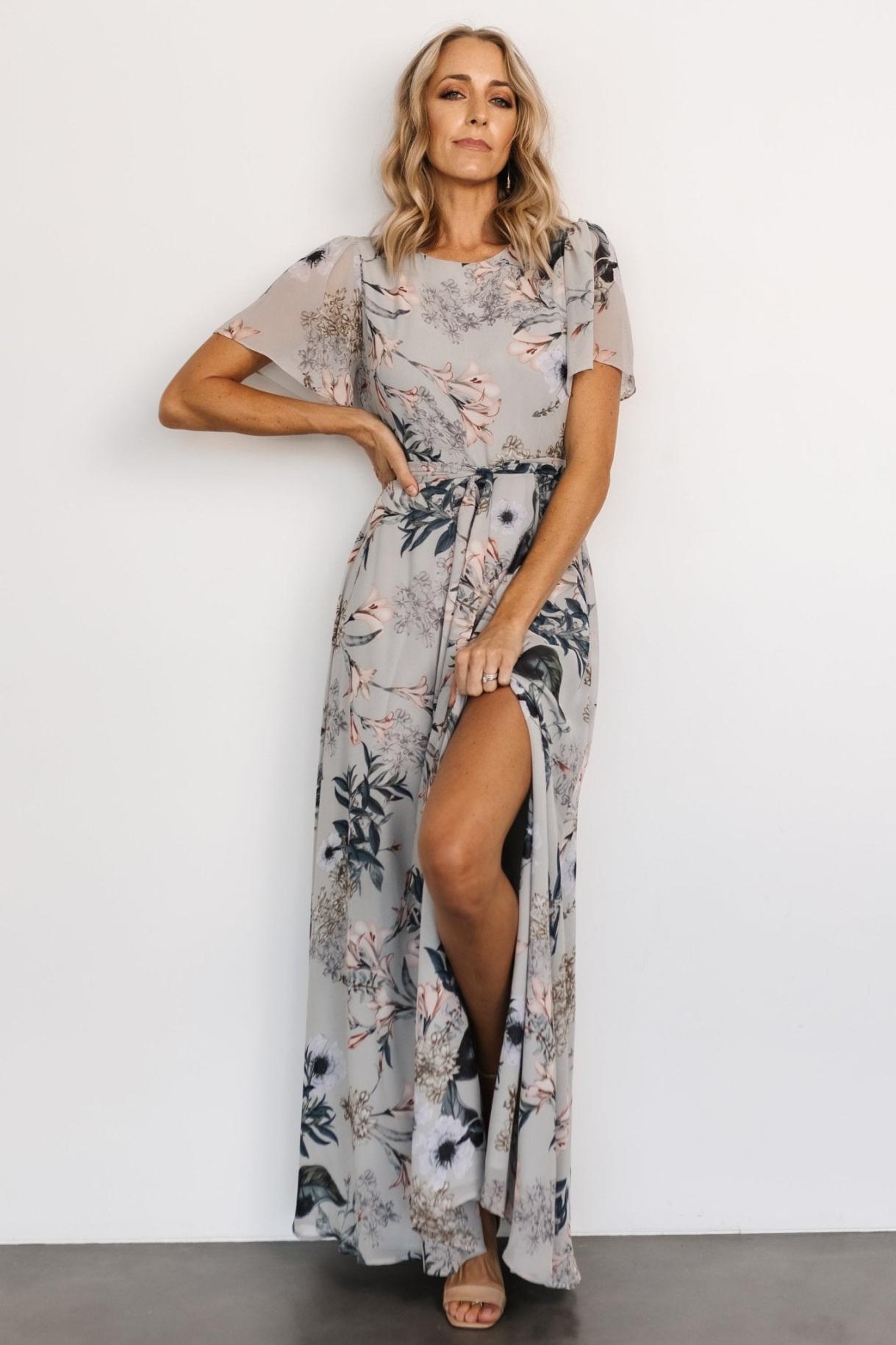 발틱 본 나오미 반팔 맥시 드레스 옅은 파란색 꽃무늬 | 의류 게스트 드레스