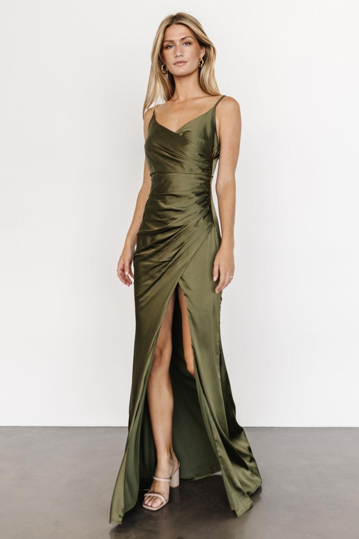 발틱 본 모네 새틴 가운 올리브 | 의류 게스트 드레스