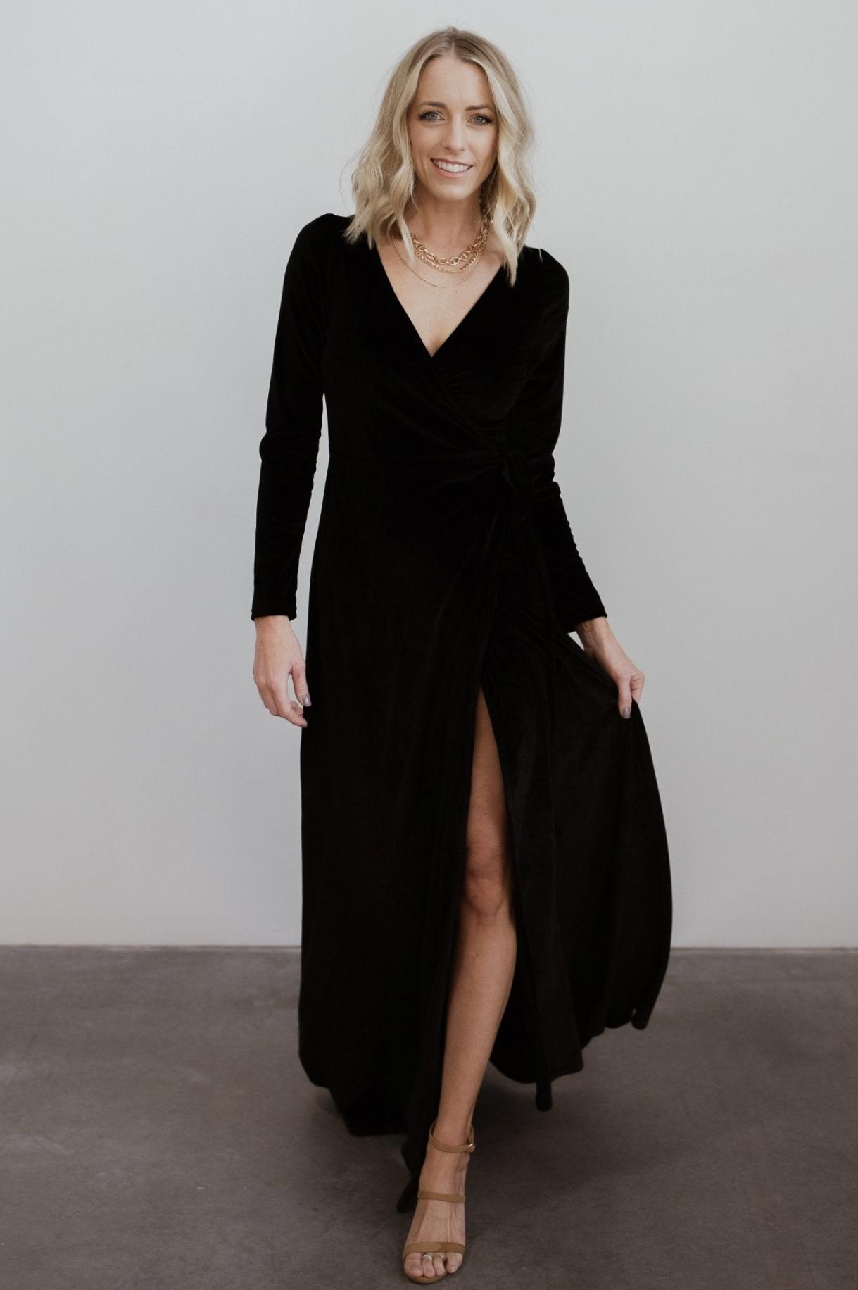 발틱 본 에스메랄다 벨벳 랩 맥시 드레스 블랙 | 의류 게스트 드레스