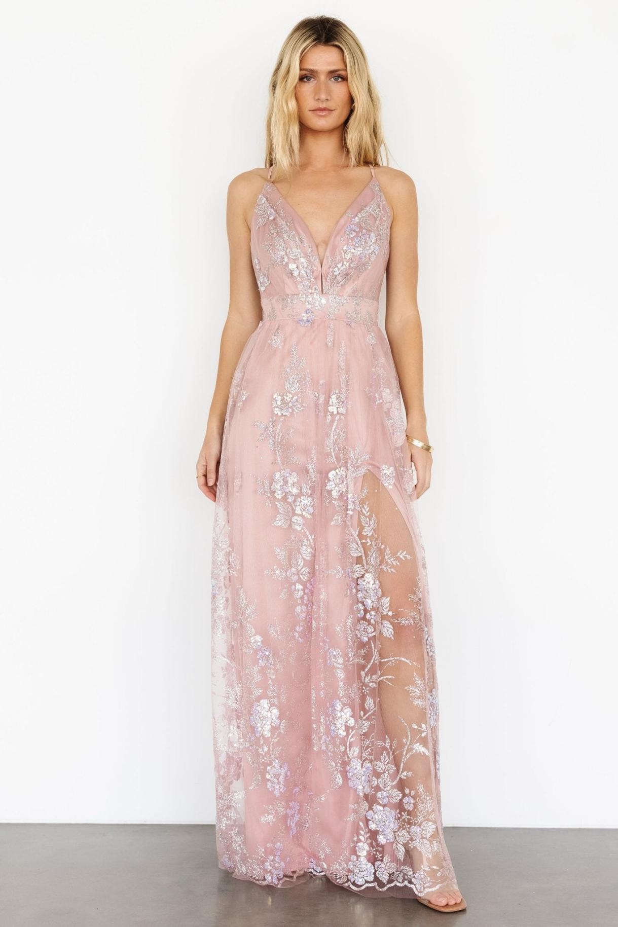 발틱 출신 루시엔 쉬머 맥시 가운 블러싱 로즈 | 의류 튤 스타일