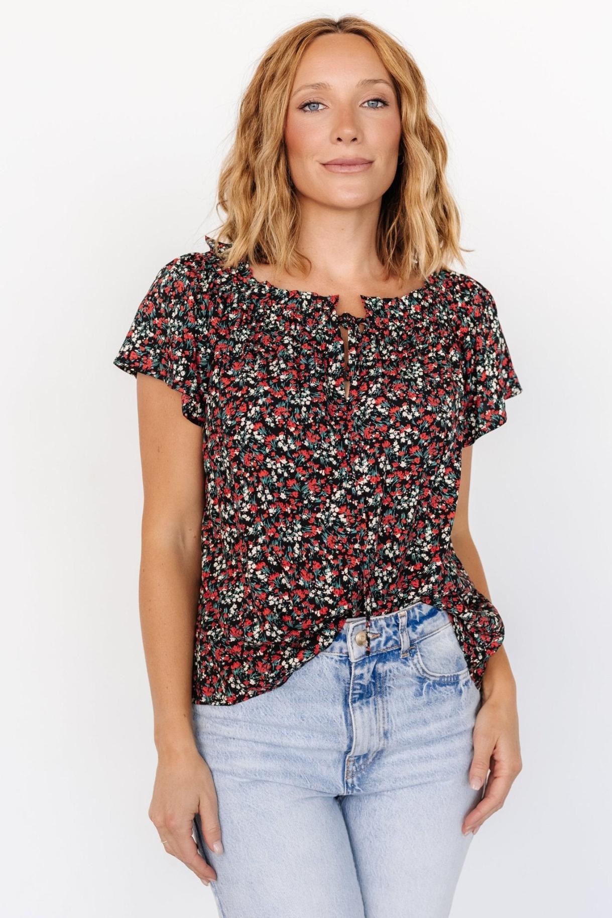 발틱 본 주드 보헤미안 탑 블랙 + 레드 | 의류 블라우스 + 셔츠