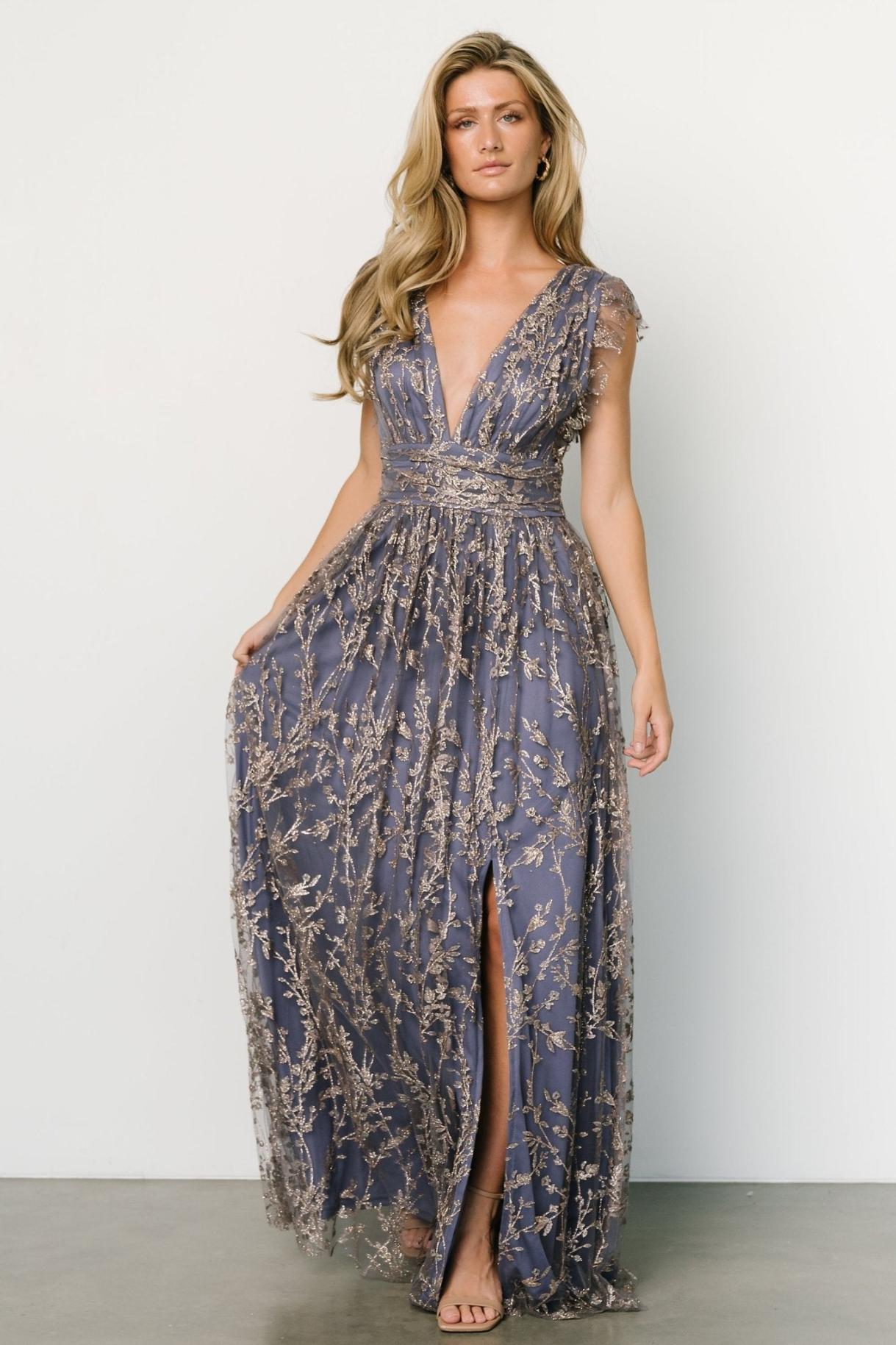 발틱 태생 아를린 쉬머 가운 블루 + 골드 | 의류 게스트 드레스