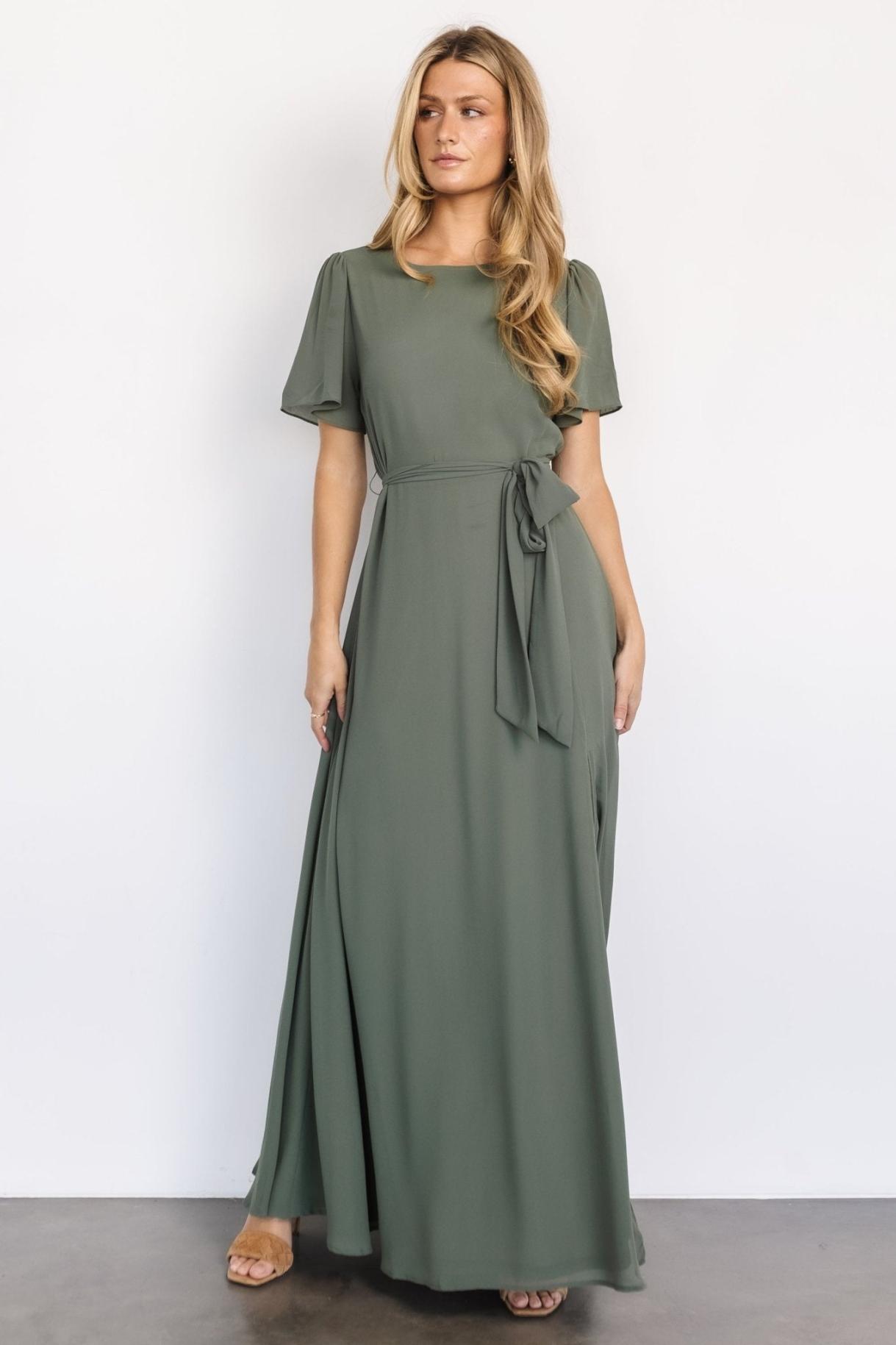 발틱 본 나오미 반팔 맥시 드레스 다크 세이지 | 의류 게스트 드레스