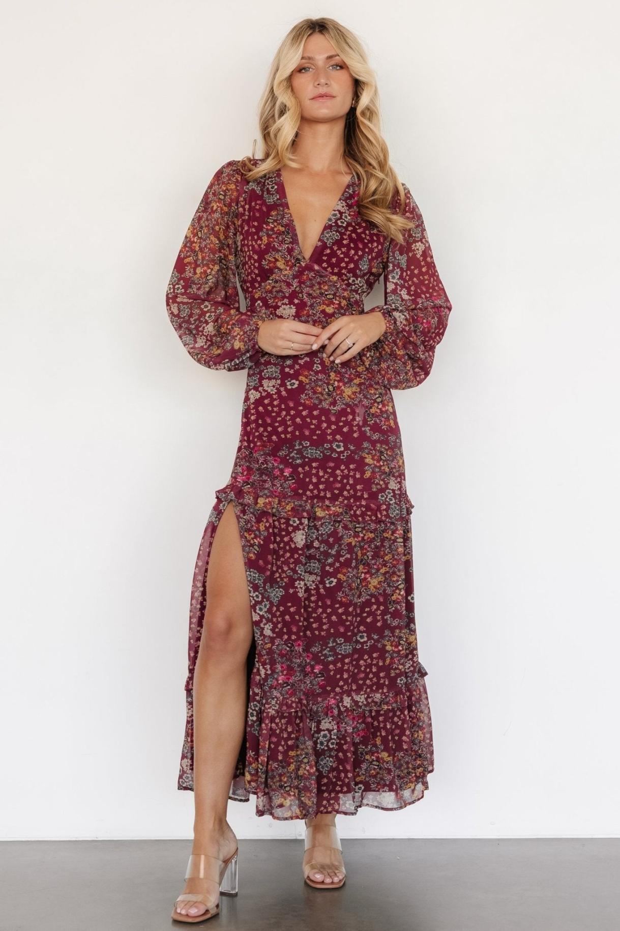 발틱 본 보우먼 딥 V 맥시 드레스 버건디 멀티 | 의류 맥시 드레스